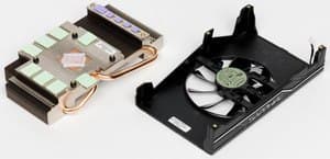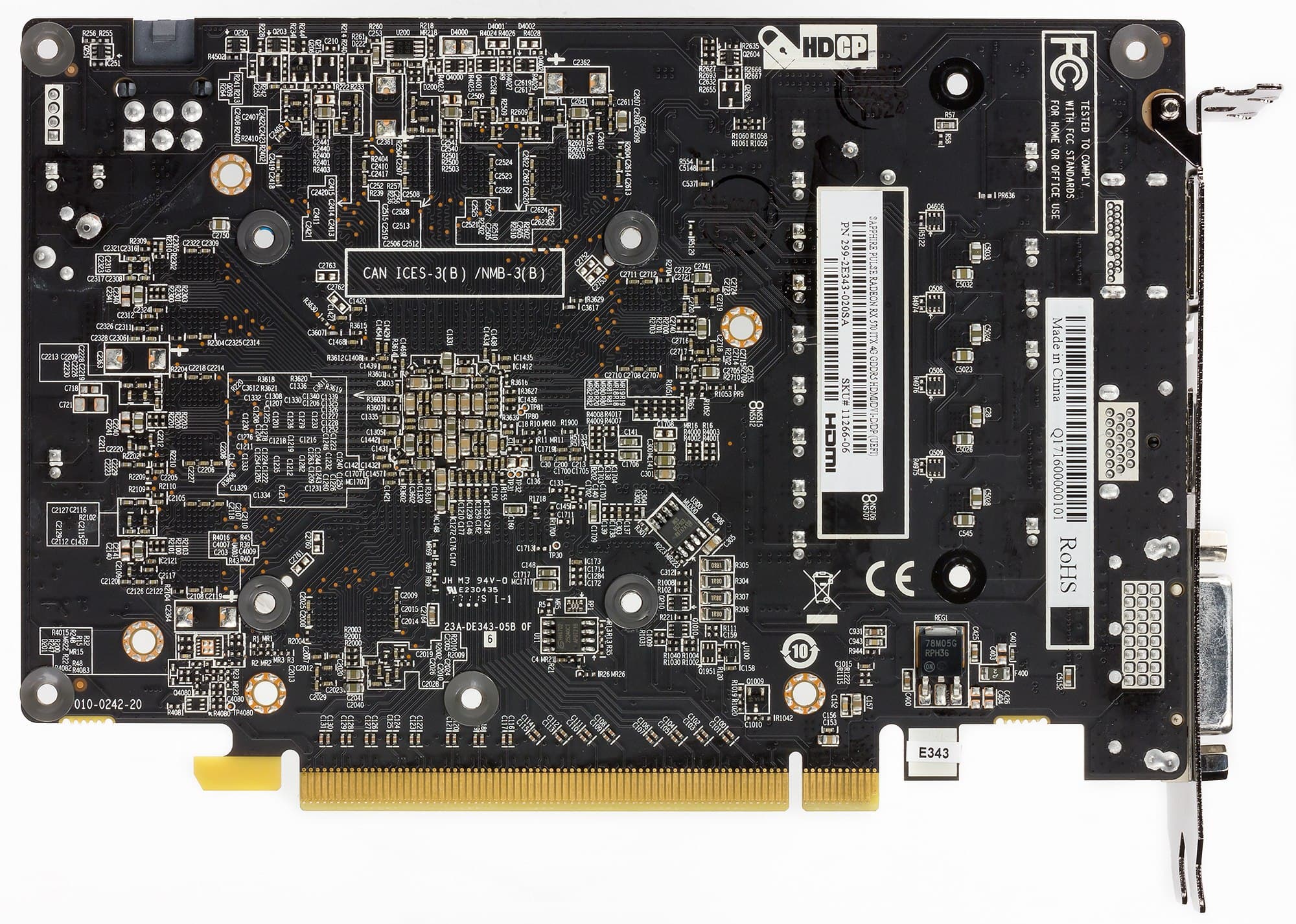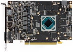 Печатная плата переделана и отличается от эталонного дизайна. Данная карта позиционируется как решение для компактных систем. У нее относительно небольшие размеры (хотя в толщину она все-таки занимает полные два слота), один разъем питания. Система питания получила 4 фазы, управляется цифровым контроллером NCP81022 компании On Semiconductor.