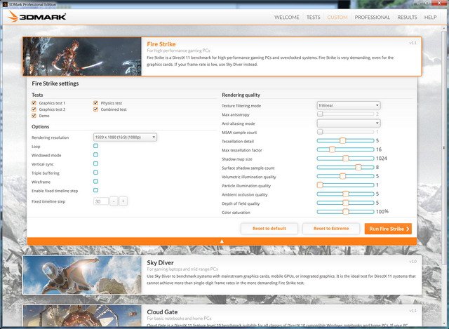 Используется только тест FireStrike с настройками по умолчанию (performance).