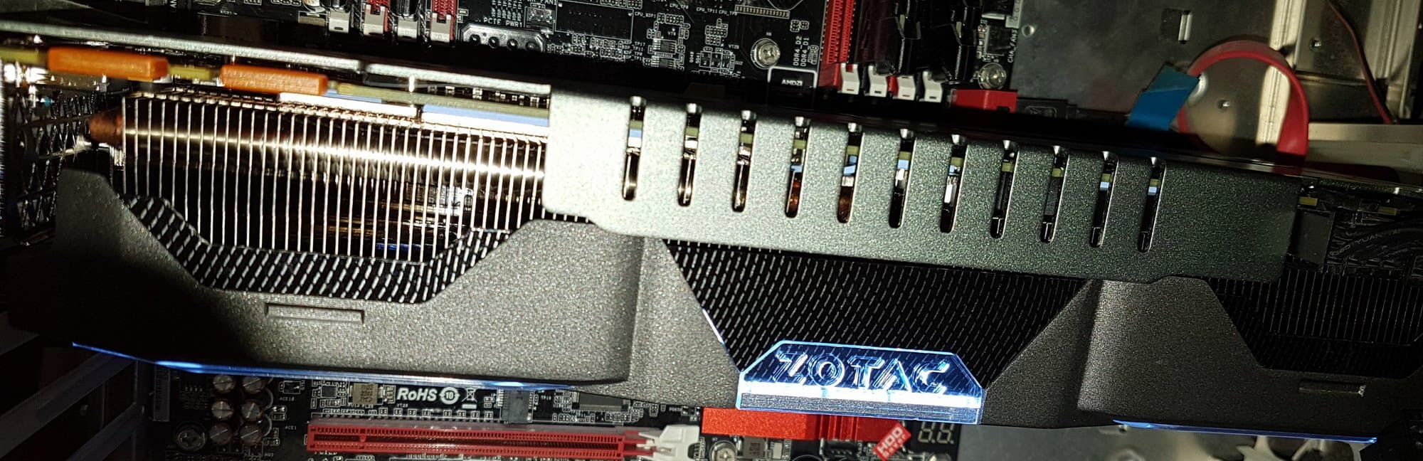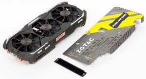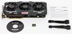 Ускоритель Zotac имеет очень тихую, почти бесшумную систему охлаждения, которая удерживает нагрев на относительно низком уровне даже под сильной нагрузкой. Любители моддинга смогут использовать элегантную подсветку на корпусе кулера и на задней панели карты. Также следует отметить, что данный акселератор полностью готов для работы совместно с устройствами VR. К минусам можно отнести громоздкость ускорителя, однако энтузиасты, способные выложить свыше 800 долларов за видеокарту, уж наверное имеют современный просторный корпус.