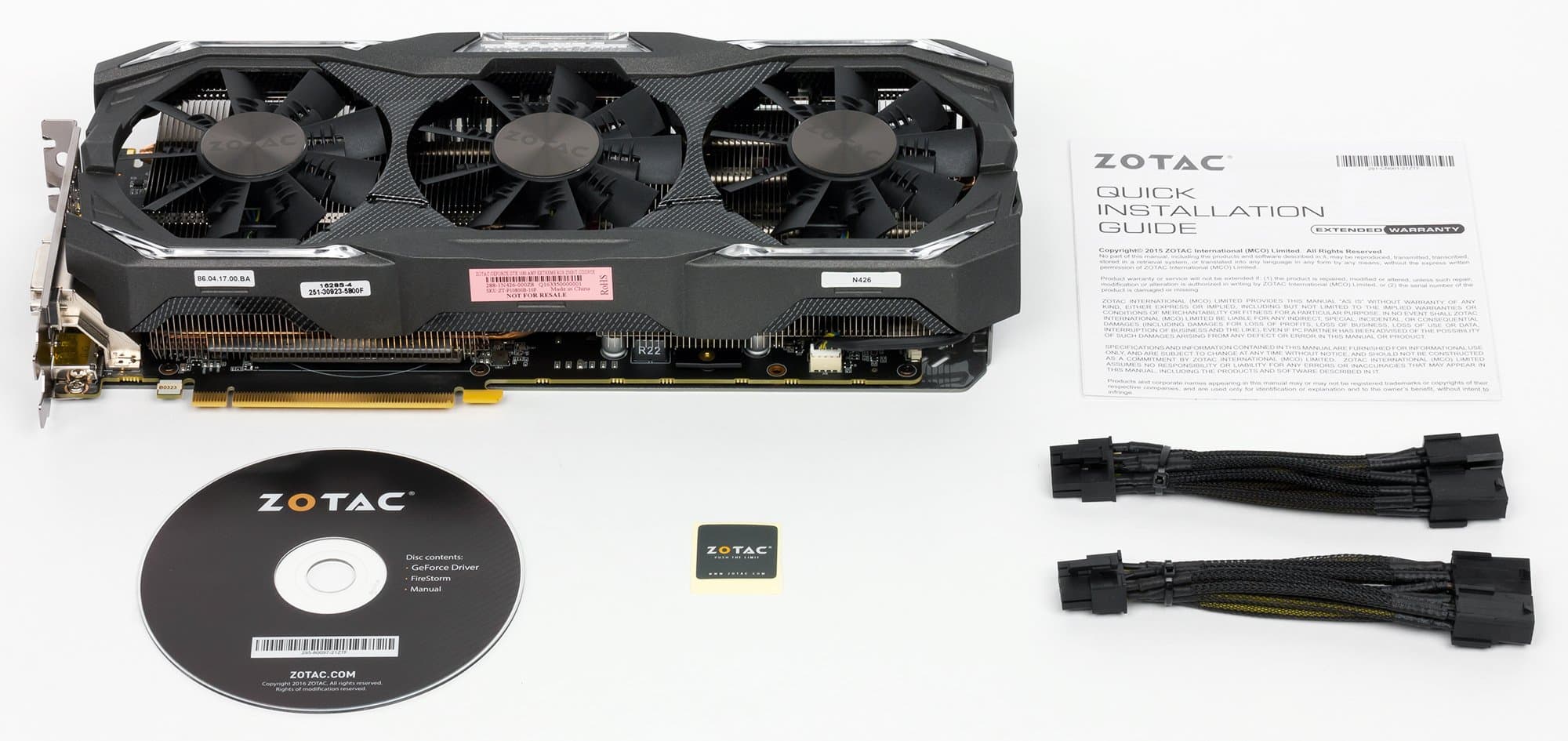Базовый комплект поставки должен включать в себя руководство пользователя, диск с драйверами и утилитами. Мы видим базовый комплект плюс разветвители питания и фирменная наклейка. | ![]() |