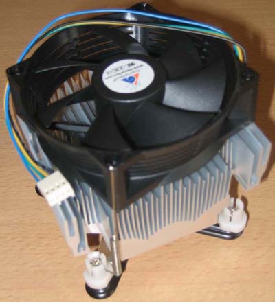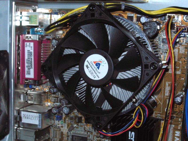 В ближайшие время собираюсь заменить Intel Celeron на полноценный Pentium. Начинаем с кулера GlacialTech Igloo 5070 PWM. Вид снизу. Внешний вид GlacialTech Igloo 5100 PWM GlacialTech Igloo 5100 PWM установлен на материнской плате. Установка на материнку. Опыту работы с платформой на 915 еще маловато, так что пришлось повозиться минут 10, чтобы установить GlacialTech Igloo 5100 PWM. В отличие от предыдущих моделей, которые уже можно собирать с закрытыми глазами. Установка GlacialTech Igloo 5070 PWM проще и быстрее. Хотя если компьютер уже собран с другим вентилятором его придется разобрать иначе просто его не установить. Если честно, то целый день собирался. Жалко было времени разбирать все, потом собирать, а затем все обратно. Но все же решился. В комнате во время тестования температура была в районе 24-25 градусов Цельсия. В различных тестах разогрев процессора осуществлют при помощи программы S&M. К сожалению такую программу быстро найти мне не удалюсь и решил использовать программу сжатия видео Canopus ProCoder 2.01.30.0, во время работы которой процессор нагружается на 100%. Для сжатия использовал видео файл 1,5 Гб формата DV. Сжатие производил в формат MPEG2 (DVD). Использовал 2 режима для тестирования. 1 - при включенной функции на материнской плате ASUS Q-Fan и 2 - при отключенной ASUS Q-Fan и термозащите процессора. Кулер Igloo 5100