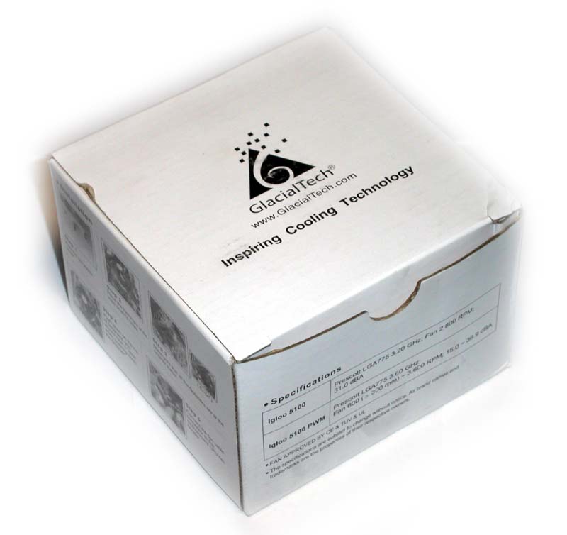 Тестирование кулеров GlacialTech Igloo 5070PWM и Igloo 5100PWMGlacialTech Igloo 5070 PWMIgloo 5070 PWM хоть и относится к бюджетному типу кулеров, но позиционируется как решение для компьютерных энтузиастов. Данная модель оснащается вентилятором типоразмера 90х90х25 мм, как и у предыдущей модели Igloo 5050, крепление также сходно с 5050. Основное отличие 5070PWM от предыдущего поколения кулеров GlacialTech - это то, что данная система охлаждения построена на основе укрупненного алюминиевого радиатора 88х94х54 мм с пластинчатым оребрением. Индекс «PWM» в модели, как и у Igloo 5050 PWM означает наличие регулировки оборотов вентилятора и скорость вращения лопастей при этом находится в пределах от 1000 до 3800 об/мин. Это позволяет генерировать воздушный поток от 13.30 CFM до 63.10CFM. Уровень шума при этом может изменяться от 18.0dBa до 40.0dBa. 5070PWM не имеет регулятора скорости, но снабжен четырёхпиновым разъёмом питания, что даёт возможность регулировать скорость вращения функциями материнской платы. Радиатор кулера Igloo 5070PWM имеет довольно продуманное профилированное основание, а также большое количество ребер разной высоты. На алюминиевом радиаторе закреплен вентилятор, с помощью проволочных подпружиненных клипс и двух винтов. Что касается основания кулера, то оно также алюминиевое. Упаковка кулера достаточно проста - белый картонный бокс. Внутри, кроме кулера, можно найти специальную усилительную пластину на обратную сторону материнской платы. Пластина эта металлическая, а чтобы не допустить замыкания контактов, она отделяется от платы специальной прокладкой с клеевым слоем. Вес GlacialTech Igloo 5070PWM составляет 551 грамм. GlacialTech Igloo 5100 PWMКулер имеет классическую для LGA775 разъема конструкцию: круглый алюминиевый радиатор с лучевидно расходящимися от центра изогнутыми ребрами. Мощный вентилятор кулера имеет размеры 80х80х18 мм., характеризуется показателем в 0.32AMP, и его скорость вращения варьируется в зависимости от температуры от 600 об/мин. до 3600 об/мин. В отличие от открытого боксового кулера Intel, лопасти вентилятора находятся в закрытом контуре, что предотвращает возможное попадание в них неаккуратно уложенных проводов самого вентилятора и системного блока. GlacialTech Igloo 5100 имеет чуть больший диаметр чем боксовый кулер Intel, но меньшую высоту. Как и полагается, радиатор оснащен медной вставкой. Формой ребер он слегка напоминает аналогичное изделие компании Intel. Крепление также схоже с референсным куллером Интел. Кому-то оно нравится, кому-то - нет. Лично мне - нет. Неудобно и постоянно опасаешься, что защёлки отломятся. Медная вставка имеет достаточно качественную обработку, контактирует с алюминиевым кольцом зубчатой плоскостью. Кулер GlacialTech Igloo 5100 также поставляется в белой картонной коробке. Внутри упаковки находится только само устройство. Вес GlacialTech Igloo 5100PWM составляет 530грамм. Тестовая система: