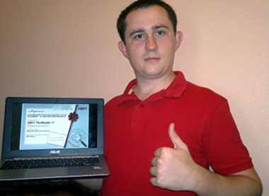 Победители викторины (всего их 10 человек) получили отличный приз: сертификат на программу ABBYY FineReader 11 Professional Edition, которая предназначена для распознавания текста, которая переводит изображения документов и любых типов PDF-файлов в электронные редактируемые форматы. Мы получили фотоотчёты пока только от 7-ми призёров, но не теряем надежды получить и от остальных.