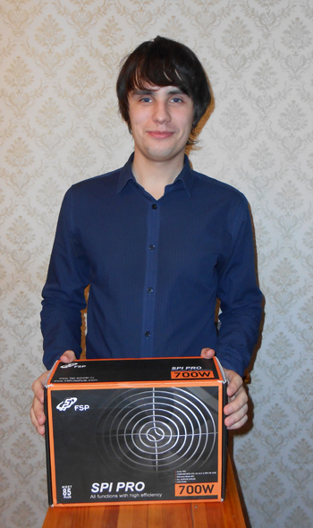 Еще два участника получили поощрительные призы - зарядное устройство и футболку от компании FSP. Одного из призёров мы можем вам представить, им стал