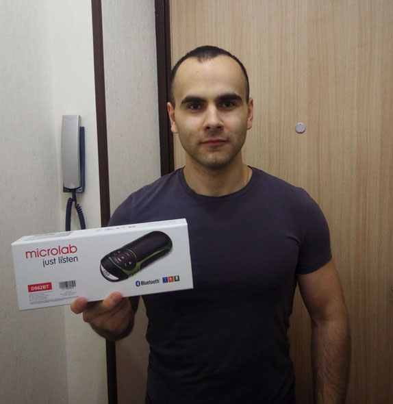 Третий приз - портативная акустическая система 2.0 Microlab D862BT с функцией Bluetooth, предназначенная для прослушивания аудиокомпозиций, досталась