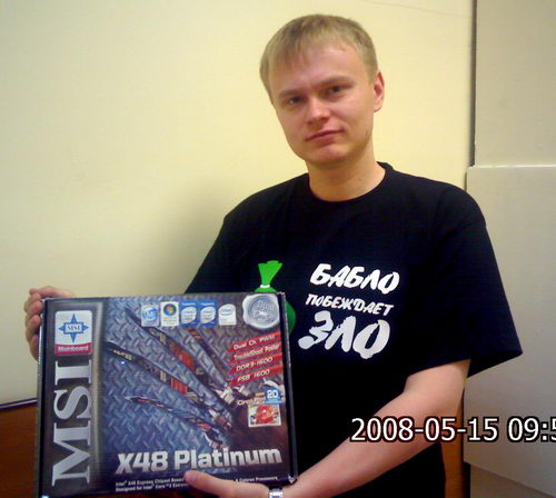 Данная викторина потребовала от посетителей сайта iXBT.com некоторых знаний о компании MSI и продукции, выпускаемой этой компанией. Правильно ответил на все вопросы викторины и став счастливчиком жребия, системную плату X48C Platinum получил Суров Сергей из Саратова. ![]() Второй приз викторины - системную плату X48 Platinum выиграл Самодуренко Роман из Новокузнецка, Кемеровской области. ![]() Третий приз викторины - системная плата P35 Platinum была вручена Александру Агеенко в московском офисе компании MSI. ![]() Правильные ответы викторины:Что из себя представляет система охлаждения на материнской плате MSI X48 Platinum?