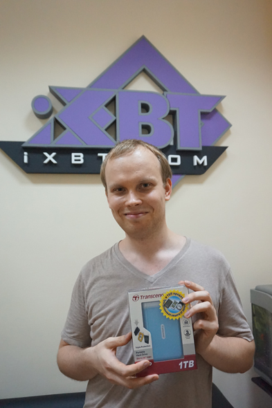 Третий приз - противоударный внешний жеский диск Transcend StoreJet 25M3B (USB 3.0) на 1 ТБ, получил
